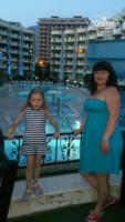 В отеле есть 4 бассейна:большой,детский(глубина 35 см),бассейн для спуска с водяной горки(работала 2 часа в день),и ещё 1 небольшой бассейн.Территория отеля небольшая:есть амфитеатр,маленькая детская площадка.Выход к морю через тунель(у меня из номера уходило на дорогу 1 минуту). На пляже шезлонги и зонты бесплатные,есть бар. Сам поселок Махмутлар очень красивый,растут пальмы,цветущие кусты,вдоль побережья стоя площадки с тренажерами, много магазинчиков где надо торговаться!