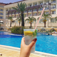 Еда: Кормят наубой и круглосуточно. Завтрак, подний завтрак, снеки в течение дня на улице, обед, ужин, "ночной дожор" - тоже организован для жаждущих:) На территории в беседке в обед пекутся (бесплатно) лепешки - "гезлеме" - они прям отличные! Рядом со снеками в обед - холодильник с мороженым (тоже бесплатно). Регулярная еда достаточно однообразная по составу, без изысков, но её в принципе много, поэтому надоесть не успевает! НО, мне показалось для 5ки слабоватым выбор "основых" блюд. Курица, говядина (очень вкусная!), иногда баранина - по 1-2 блюду каждого на ужин. Рыба - всегда одинаково приготовленная, и не из дорогих сортов. Один раз подали кальмары-фри на улице. Других морепродуктов нет. И не ждите. Зато много видов сыров, оливки, овощи - все это вкусно! Дессертов тоже много - всегда 10-15 видов, но они только на вид разные, а на вкус все однотипные (или мокрый бисквит с медом или пуддинги + пахлава). В мае выбор фруктов был уже приличный, но часто фрукты попадаются незрелые, раз на раз не приходится. К концу стали подавать клубнику ежедневно. Завтраки обильные и достойные. Выпечка одинаковая на вид и на вкус каждый день - круассан, мини пицца, рогалик с кунжутом, пара булочек с начинкой - все из одного теста . Подают лукум, что, в принципе, для других отелей, как ни странно, редкость. Напитки - чай, кофе - стандарт, а вот соки отвратительные, как и везде в Турции - есть свежевыжатые, но тут уже за 2$.. Для себя отметила, что в баре, что ближе к ресторану, напитки типа Пепси лучше, НО! концепция UAL не выполняется. Напитки подаются местные: просишь Бейлиз, тебе наливают что-то из "местной" бутылки, но по вкусу такое же.