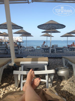 Пляж: собственный, галечный, небольшой, вход не плавный - глубина практически сразу же. Лежаков тоже пока хватало. Есть песчаная площадка для воллейбола.