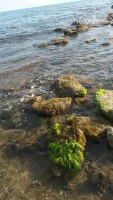 Пляж – отлично. Лежаков достаточно. Чисто. Хороший пляжный бар. Отличный вход в воду. Согласна, что вход в воду лучше с правой стороны, если стоять лицом к морю. Но зато с левой стороны, во время отлива, можно побродить по камням и увидеть крабов, рыбок и даже осьминога (!). Это было нашим любимым вечерним занятием)))