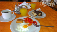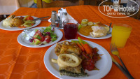 НОМЕР. Жили мы на третьем этаже, в номере 317 с прямым видом на бассейн и ресторан. Когда зашли сразу поняли, что всё будет нормально. Конечно, мебель старенькая, странного оранжево-коричневого цвета, явно перекрашенная и подремонтированная, но целая, ничего ни где не отломано. Из мебели две кровати, сдвинутые вместе, два столика журнальных, стул и типа как табурет, только мягкий, столик для багажа, два шкафа (10 вешалок). Телевизора нет, но зато есть маленький холодильник, нам это было важнее и кондиционер, тоже старенький, но работал отлично и не шумный. Бельё чистое и не драное, семь полотенец. В ванне тоже всё было нормально, всё работало. Правда немного испортила впечатление слегка треснувшая сидушка унитаза, но это мелочи. Конечно, по большому счёту мебель, матрасы, подушки и сантехнику пора менять, но это уже дело владельцев отеля. Видно, пока всё это ещё в рабочем состоянии будут пользоваться. Короче, номер очень простенький, но мы и не ожидали чего-то большего. Теперь советы: 1-в номере всего одна розетка, БЕРИТЕ с собой тройник или удлинитель, а то будете, как я вставать среди ночи, чтобы отключить зарядку от фотоаппарата и включить заряжаться камеру, тем более, что, я конечно не поняла почему, но всё заряжалось гораздо медленнее, чем у нас дома. 2-берите фумигатор, на Родосе много комаров, если спать с открытым балконом - сожрут. Мы закрывали балкон и включали кондиционер, так было лучше. 3-по ночам может не быть горячей воды, так что купаться лучше где-то до 11 вечера, с чем это связано не знаю, может там вода солнцем нагревается, а ночью остывает, но так уж есть. 4- если хотите чтобы поменяли полотенца, бросайте их на пол, нам так всегда меняли. если так не делать, то менять будут раз в 3-4 дня. Убирали в номере каждый день.