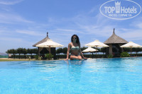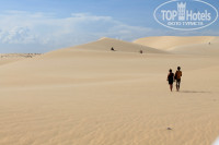 Отдыхали в этом отеле к конце апреля. Единственный минус, и то это минус Вьетнама, а именно деревушки Муйне-это дорога...Расстояние от аэропорта до Муйне- 240 км, максимальная скорость на трассе- 40 км/ч. Итого, дорога от аэропорта до отеля заняла 6 часов. Сам отель расположен на окраине Муйне, тишина и блаженство. И так по порядку: про дорогу повторяться не буду))) Заселили нас через 10 минут после приезда, очень быстро. У нас было бунгало на берегу, т.е. первая линия, моря конечно не видно, т.к. кусты между домиком и пляжем, они защищают от песка с пляжа, но зато вечером, выйдешь на балкончик посидеть, шум моря, тишина, блаженство.Территория по моим наблюдениям самая большая из всех отелей в этом районе, очень красивая, море зелени, цветов. Для любителей фотографироваться- хоть под каждым кустом))). Море правда было не спокойным, но чистым, 10 дней из 12 были волны, но мы не расстроились, был неплохой бассейн, с баром)))Завтраки не плохие, есть европейская еда и местная. Обедать и ужинать мы ездили в саму деревню. Передвигались на мопеде( сразу возле отеля есть прокат" У Лени", 300 руб на наши все удовольствие на сутки), первый день конечно было страшновато, т.к. правил здесь нет,))) но учитывая скорость 40 км/ч, даже джипов, безопасно, а полицию не видели ни разу. Ужинать ездили либо на Boke, это целая улица кафешек на набережной с аквариумами всякой живности, при тебе ее достают живую, и жарят на гриле., либо в ресторан "Дежавю", он в самом начале туристической зоны, от отеля конечно далековато, но он реально лучший( по средам здесь шоу в национальном стиле с 7 блюдами местной кухни, а по пятницам шоу с коброй, администраторы- русские девочки, очень внимательные, все на высшем уровне, цены тоже отличные,на 50 баксов мы заказали: лягушку гриль, скорпиона, страуса, крокодила, змею, куропатку, и спиртное .Ездили на мопеде на Белые дюны, очень советую, безумно красиво, хочу немножечко предостеречь, там по приезду сдают баги в аренду 20баксов -5 минут, обдираловка, говорят далеко до дюн пешком, там просто не видно куда идти, а на самом деле все очень рядом, просто идите прямо, но если конечно хотите погонять по дюнам, то вперед, там есть помощники специально обученные, мы забрались высоко и не могли сами съехать, так нас доставили вниз за 5 баксов, с ветерком, с бархана под углом градусов 90, чуть сердце от страха не выпрыгнуло из груди))). Брали экскурсию на 2 дня-называется Изумрудный треугольник, можно много всего и сразу посмотреть, так как мы понимали что во Вьетнам не вернемся, из за переезда))) очень рекомендую, входит экскурсия в парк джунглей, там гейзерные источники, полежать, озеро со спа рыбками-очень прикольно, крокодиловая ферма, кормление гималайских медведей, Нячанг( вечер у нас был свободные мы ездили на остров развлечений, по самой длинной в мире канатной дороге над морем) , следующий день- на большой лодке купание над кораллами, часа 3 на отличном острове с белым песком( отдаленно напоминало мальдивы( были там в августе 2014) , обед на лодке из свежей рыбки с ромом))). Итог: наелись морепродуктов(очень дешево), наелись фруктов( очень дешево) , накатались на мотобайке( на долго), море впечатлений, но главное, всегда имеет значение с каким настроением едешь, так и отдохнешь!