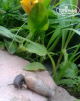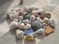 Идти до пляжа близко от 3 до 5 минут. Пляж не порадовал, камни кругом и мелкие колючие и крупных хватало, первых дня 3 был на море шторм, заходить в море без спец. тапок было проблемой, по камням очень больно, да и волной постоянно обратно на берег выносило, приходилось корячиться, чтобы поплавать по волнам. Море было 22-23 градуса, заходить по началу прохладно, но привыкаешь и выходить потом уже не охота, погода теплая, хоть и погода в начале очень переменчивая была, то солнце, то тенек, а то и дождик моросил, но очень быстро заканчивался и становилось снова тепло. Само море конечно шикарное, прозрачное. Бегают ящерки (на входе на пляж), после шторма насобирали на берегу много ракушек...Рядом с морем протекает речка (вонючка), вода в ней как на болоте. Живут в ней морские черепахи и лягушки с птичками.