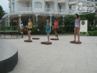 Утром в 10 часов на пляже Фитнес аниматор Юля проводила со всеми желающими зарядку на полянке около моря. Диджей и аниматор по совместительству Джан приглашал всех играть в дарц и волейбол. с 10 до обеда и с 14-30 до 5 детский аниматор Вика занималась с ребятишками. Есть детский уголок на улице, со столиками и стульчиками, где детки рисовали, делали аригами, играли в игры, разукрашивали футболки, рисовали на песке, катание на лошадях (за отдельную плату), она им разрисовывала лица, ходили на пляж искать клад и многое другое. Есть там же рядом за рестораном детские качельки и креслица для деток и их родителей, многие деток на все это время оставляли Вике и она с ними занималась. Часов в 11 на бассейне акваэробика. После водное поло в бассейне, часов в 12 веселые игры, танцы на бассейне.