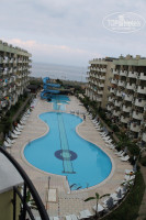 Начну по порядку. Отдыхали с мужем с 6 июня по 12 июня года. Летели ночью, прилетели в Анталью рано утром, до Махмутлара ехали еще 3,5 часа + одна остановка на 15 минут. Наше размещение ROH - значит двухместный номер на усмотрение отеля. Приехали в отель в 10 часов. Нам сразу надели браслеты и предложили двухкомнатный, более комфортабельный номер за 20 долларов, иначе - только 1-й этаж. Мы доплачивать не стали, сказав, что 1-й этаж нас вполне устроит. Тогда ваш номер будет готов к 12 часам. Мы пошли осмотрелись, попили кофе, и где-то без десяти 12 нам дали однокомнатный номер на 4 этаже. Номер просто замечательный, всем нас устроил: двуспальная кровать, телевизор (ест каналы на русском), холодильник с 2-мя бутылками питьевой воды (не пополняется, но можно далее набирать воду самим в куллерах), сейф (платно, мы не брали, не пропало из номера ничего). В ванной 2 небольших куска мыла, 2 пузыречка с шампунем, две ватные палочки и шапочка для купания. Пляжные полотенца нужно брать с собой, либо купить в магазинчиках за отелем (всего 1 доллар). В номере одно большое и одно среднее полотенце на каждого, одно для ног. Полотенца из номера выносить нельзя.