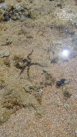 Море чистое, мусора в нем нет, есть место,где можно понырять с маской и увидеть больших рыб (длиной 70см), покормить их хлебом. Можно встретить ската.