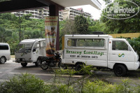 Отдыхали в отеле Boracay Ecovillage Resort & Convention Center в августе 2013г около десять дней. Приехали в отель в 12 ночи, лил проливной дождь. мы добирались на трицикле, соответственно все мокрые)) Заселили нас моментально! Спросили, можно где-нибудь перекусить, сказали, что ресторан уже закрыт. Поднялись в номер на втором этаже. Номер дали не тот, который мы бронировали, а намного лучше и просторней! Большая площадь, огромная и как выяснилось удобная кровать, полноценный обеденный стол и стулья, холодильник, телевизор, чайник, кондиционер. В ванной душ, принадлежности и полотенца, очень мягкие и чистые! В общем, заселение порадовало! Через десять минут, в дверь постучались и принесли нам огромный поднос с едой. Каша, тосты, масло, джемы, фрукты, чай и кофе!. На вопрос сколько должны, ответили, что ничего не надо! Очень приятно! Читала отзывы, что проблемы с горячей водой и напором, не знаю, у кого как,у нас проблем с этим не было! Вообще, в период нашего пребывания, отель был пустой. Не знаю, почему так мало постояльцев, нам все понравилось и все устроило! Специально искали тихий и отдаленный отель. У отеля огромная территория, хороший бассейн, прекрасный пляж,чистейшая лазурная теплая водичка, трансферы на Puka Beach, привозят и забирают в оговоренное время! Так же отвозят в центр острова, к Budget Mart — основному супермаркет Боракая. Находится он на центральной улице D’mall, на второй станции. Возят абсолютно бесплатно! Завтраки в отеле однообразные, но наесться можно. Всегда на завтрак давали манго, очень вкусные. сладкие и сочные! Недалеко от отеля есть много магазинчиков и лавок, там тоже можно приобрести фрукты, напитки, чипсы и прочее..Основательно покушать можно в ресторане при отеле (цены нормальные), но можно и дешевле на уже упомянутой D’mall. Там множество ресторанов и кафе, на любой кошелек!