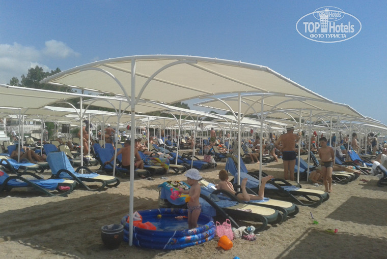 На пляже места хватало всегда, но к концу нашего отдыха народу заметно прибавилось, поставили еще дополнительно лежаки, ну и многие отдыхающие обоих отелей стали бронировать места на шезлонгах с утра пораньше. И придя часов в 9 утра, в первые 5 рядов можно уже и не попасть.