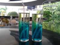 В баре есть вино из бутылок белое и красное (вкусные), пиво, водка, джин, раки, безалкогольные напитки, сиропы. Делают различные коктейли. Могут по вашей просьбе намешать любой коктейль из представленного ассортимента. Прочие напитки за доп.плату.