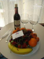 Приехали мы днем ближе к обеду, поэтому поселили нас сразу. На ресепшене работают посменно две замечательные русскоговорящие девушки. К ним всегда можно обратиться без проблем. В номерах нас ждали приветственные блюда с фруктами и бутылочки вина. Что очень приятно.
