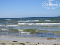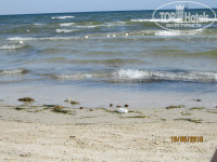 Для нас отдых на море - это на 50% собственно море. Море нас разочаровало. Оно мелкое и грязное. До буйков метров 50. Половину этого расстояния вы идёте по колено в воде, потом становится поглубже. Около буйков - по плечи. Отплывал ещё метров 50 за буйки - там всё по прежнему также мелко. Почти всё время был сильный ветер (5-8 м/с) и сильные волны. Изза этого вода всё время была взбаламученной. Чистота воды варьировалась от просто мутной изза поднятого со дна песка до откровенной помойки в воде из смеси водорослей и всякого мусора. Если для вас море - это кристально чистая вода, где видно каждый камешек на дне, то вам не сюда! В дни когда, море было особенно грязным, было жалко, что нет понтона - было видно, что в 150-200 метрах от берега море кристально чистое, но идти к нему по колено в помойке совсем не хотелось. Это наш первый отдых на море, где мы примерно 50% времени купались в бассейне с хлоркой вместо моря.