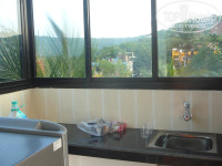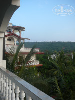 Прилетели мы вечером, заселили сразу же. Нам повезло, нас с подругой заселили на четвертый этаж того здания, на номера в котором все тут жалуются. Соглашусь, номера маленькие, собственных балконов как таковых нет, есть разделенные перилами части общего балкона, что не очень, конечно, удобно, но возле каждого номера стоят плетеные кресла) У нас (мы жили в номере WF B-15) была собственная терраса с кухонным уголком с видом частично на пальмы, гору… в общем… красота! В номере был и шкаф со встроенным сейфом (это ящик с ключом), стол, стулья, двуспальная кровать (огромная), ЖК телевизор (русских каналов нет), потолочный вентилятор, кондиционер, рукомойник с зеркалом и туалет с душем в одном флаконе. Уборка номеров проводится по запросу (мы ни разу не просили, мусор сами выносили), персонал улыбчивый, на русском не разговаривают, но на английском без проблем. Удалось даже выцыганить электрический чайник у них) Дабы наладить контакты с нашими братьями индусами, мы прихватили русские шоколадки) Наших подруг поселили в здание напротив. Номерной фонд этого здания и представлен на фото отельера – огроооомные номера с балконами.