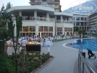 Отдыхали в Баруте с 14 по 25 июня 2015 года с 11-ти летним сыном. Туроператор Библио-Глобус, перелет Трансаэро, принимающая сторона Килит Глобал, без нареканий, все гладко и вовремя. Отель выбирала на данном сайте по отзывам и не разочаровалась. Даже более того, мы с сыном были в шоке от великолепия Барута. Приехали в отель в 13:30, сразу же получили номер с боковым видом на море (как и было заявлено при покупке тура). Персонал на ресепшен очень приветливый, есть русскоговорящие сотрудники. Холл огромный с большим количеством диванов и кресел, красивый фонтан, стеклянные лифты. Номер достался на 4 этаже, слева горы потрясающе красивые, справа море. Номер большой, светлый, чистый, шкафы и тумбы удобные, вещи есть где разложить и повесить. В шкафу халаты и тапочки, сумка для пляжных полотенец. В номере есть чайник, что очень порадовало. Мини-бар пополняется регулярно, уборка номера отличная. Кондиционер почти не включали, с моря дул ветерок и в номере в любое время суток было комфортно. Но это каждому индивидуально конечно. Вечером слышно дискотеку соседнего отеля, но нам не мешало, за день так уставали, что засыпали "без задних ног". Территория отеля небольшая, но совершенно не тесная, очень красиво оформлена клумбами и аккуратно подстриженными деревьями и кустами. В ресторане свободных мест всегда очень много. А питание это что-то. Очень большой выбор, все неимоверно вкусно, необходимо иметь несколько желудков, чтобы все попробовать)) Даже моему разборчивому в еде сыну было, что выбрать из такого изобилия. На завтрак свежевыжатый апельсиновый сок, тосты, блины, выпечка. На обед и ужин всегда по несколько видов рыбы, мяса, гарниров. Огромное количество овощей и фруктов. Есть диетические блюда. В период нашего отдыха была вкуснейшая клубника и черешня. Креветки бывают, утка и перепелка. По мере того, как еду разбирают, емкости моментально заполняют снова. Никто не остается обделенным. Персонал в ресторанах очень и очень внимательный, хорошо понимают русский язык. Приносят напитки, тарелки убирают моментально. Нет никакой дискриминации, и к русским, и к иностранным гостям относятся одинаково уважительно. В Турции отдыхаем третий раз, в других отелях такого почтительного отношения не встречали. Мороженое весь день без ограничений. Бассейнов на территории 4 (релакс, большой - глубина 140 см, детский - 35 см и с горками - 120 см). На горках и на бассейнах находятся спасатели. Отдельная просьба от ребенка: положить коврик от горок до туалета, а то горячо и скользко по плитке бежать, а обуваться время не позволяет, нельзя терять ни минуты))) Лежаков у бассейна хватает, совершенно не тесно ни на берегу, ни в воде. Вот на пляже с лежаками дела обстоят хуже. После 10 часов утра проблематично найти свободные лежаки в тени, а солнце в Турции беспощадное. Отдельная просьба к руководству отеля поставить больше навесов. На пляже также дежурит спасатель и охранник. Море просто шикарное, чистое, мягкое, выходить из воды вообще не хочется. С мутным морем Белека не идет ни в какое сравнение. Входить в море можно и по лесенке специальной и просто по камням. Глубоко становится постепенно. По камням ходить конечно больно, но мы купили обувь для плавания и никаких проблем. Зато вода чистейшая, даже рыбок видели. Рядом на пляже водные виды спорта на любой вкус за ваши деньги) Аниматоры в оте