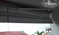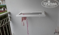 Большой балкон со столиком и стульями, сушилка, тент от солнца (управляется пультом). ЖК ТВ с ОРТ. Сетка от комаров задвигается на балконе, фумигатор лежит в тумбочке. Комаров не было))