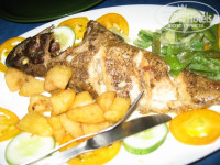Учтите, во всех кафе: Если вы заказываете рыбу или креветки, или мясо, то Вам принесут помимо вышеперечисленного еще и гарнир (картофель фри, кулечек риса и немного салата), так что нет смысла заказывать отдельно макароны или картошку, или рис, конечно если картофель-фри не надоел.