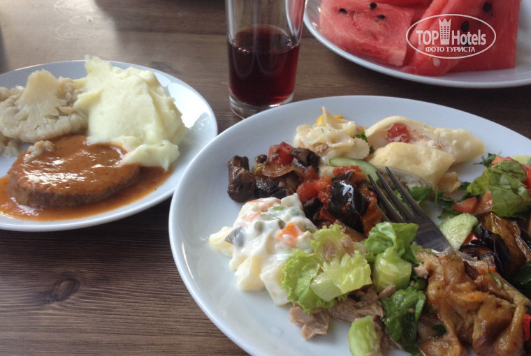 Еда: было всё очень вкусно!!!!!! Голодными даже мужчины не оставались! Ужины шикарные! Из фруктов: арбуз, апельсины, черешня, дыня.