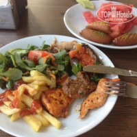 По приезду нас заселили не сразу в отель, а попросили переночевать в соседних апартаментах, не было свободных номеров. Нас это не затруднило, на следующее утро в 11 уже были заселены в отель. Кроме того, хочется отметить то, что мы прилетели поздно,на ужин не успели, но я спросила есть ли возможность перекусить с дороги, менеджер тут же попросил персонал нас накормить, так что было очень приятно.