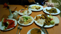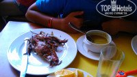 Питание нормальное, без изысков, но голодными не были совсем. Завтраки нормальные: блинчики, омлеты, яичница, фрукты, овощи ( в основном помидоры и огурцы), хлопья..... обеды - суп, мясо, гарниры разные, очень вкусный рис, закуски, пироженки на любой вкус, фрукты (арбузы, апельсины очень вкусные, бананы, виноград, яблоки), ужин был похож чем-то на обед, но больше блюд - два вида супа, больше выбор мясного и закусок, сервировали столы и стелили скатерти. Сыну понравились крабы и рыба в панировке. По напиткам - кофе, чай, газировка, сок (юпи). Из алкогольного - вино красное и белое (средние), пиво бутылочное, вполне освежало. В барах в здании и у бассейнов различные коктели. Имелся фреш-бар, но платный. Вкусный фреш из манго 5$, апельсин 4$, нас еще и арбузом угостили. Мы всем были довольны! А вот а-ля-карты их подкачали, самый вкусный - восточный, остальные совсем не понравились. И вот там отношение к русским отличается. Я не согласна с теми, кто пишет, что нет национального признака. К русским относятся хуже, чем к европейцам. Особенно в почете гости из Германии, т.к. владелец отеля немец. И это несмотря на то, что чаевые дают только русские. Из звездного ресторана мы ушли голодные и не успели на ужин в основной ресторан. Было неприятно. Но в других местах все было хорошо. Надо просто улыбаться людям. И чаевые в 1$ бармену обеспечат вкусные коктели )