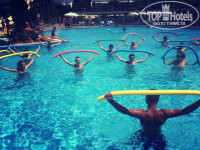 С самого утра зажигательные танцы от аниматоров у бассейна, водное поло, гимнастика на суше, аквагимнастика , дартс, теннис настольный, волейбол, боча и многое многое другое и так, до самого вечера.