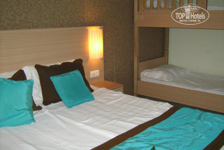 В номере двухспальная кровать,для детей двухъярусная. Дети 6 и 14 лет.
