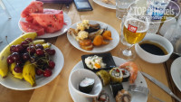 Все понравилось. Разместили в прицепе быстро. Мы приехали рано утром и в 12 нам уже дали номер, хотя расчетный час 14. Нам сразу выдали карты на полотенца и мы пошли купаться. Правда море в этот раз было с волнами. Первые дни было трудно плавать. Еда всегда свежая и вкусная. Может ассортимент не такой огромный, как в других отелях, которых мы были...но нам всего хватало даже слишком!!! Еще раз повторюсь все свежее и вкусное. Наши дети всегда находили, что покушать..а в еде они привереды.