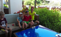 Никогда еще и ни в одном отеле нашими детьми так не занимались как в Ликия! Начиная с 10 утра, и лишь с небольшим перерывом на обед и до вечера…… игра в Мафию, водное поло (хотя больше это было похоже на водное «регби»))))), стрельба из винтовки, из лука, футбол и волейбол…….Наши мальчишки, лишь только проснувшись --- сразу бегом к Кириллу и Родиону!!!