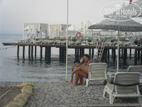 Пляж-немаленький, в основном крупно-галечный,есть большой пирс с лежаками,зонтики,