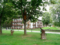 Территория большая,много беседок для барбекю,шашлыков,бассейн,спа,тренажеры,много развлечений для любого возраста.