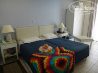Номер очень хороший, просторный , чистый, есть кондиционер, вентилятор, телевизор, холодильник (платный), фен, единственный недостаток на Кипре розетки трехштырьковые и с прямоугольными отверстиями. Для использования своих электроприборов вам понадобятся переходники (адаптеры), мы взяли его утром на ресепшене (попросили две штуки, так-как нас было трое и у всех телефоны и фотоаппараты), там же нам дали пульт для телевизора, только заполнили карточку, при выезде мы все сдали. Убирали в номере каждый день, но полотенца поменяли за это время только один раз, так же как и постельное белье. Номера "стандарт" находятся во втором здании, окна выходили на улицу баров. Было конечно шумновато, спать с открытым балконом сложно. Мы включали кондиционер, на небольшую температуру и вентилятор, он рассевал поток воздуха. Было вполне приемлемо. У отеля есть бассейн и лежаки, но мы там не загарали, ходили на море.