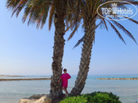 Отель расположен очень удобно, недалеко от центральной набережной, все рядом: магазинчики, кафешки, бары, есть где погулять и что посмотреть. Много достопримечательностей, обязательно пройдите посмотрите. Археологический парк, красивые церкви рядом, раскопки и старый город(там красивый парки с оставшимися там каменными арками и аллеями), на карте все эти места помечены и просто двигайтесь к ним. Море так же не далеко. Мы ходили на пляж рядом с отелем "Alexander The Great ", идти минут 10, там песочек, хороший заход в море, народу не очень много, это очень радовало. Пляж муниципальный, можно взять лежак и зонтик, по 2,5 евро. Только водичка бодрила, наш отельный гид Юлия, сказала, что там холодные течения. Можно просто искупаться рядом с отелем, с пирса, там дно каменистое и заход в море с лесенки.