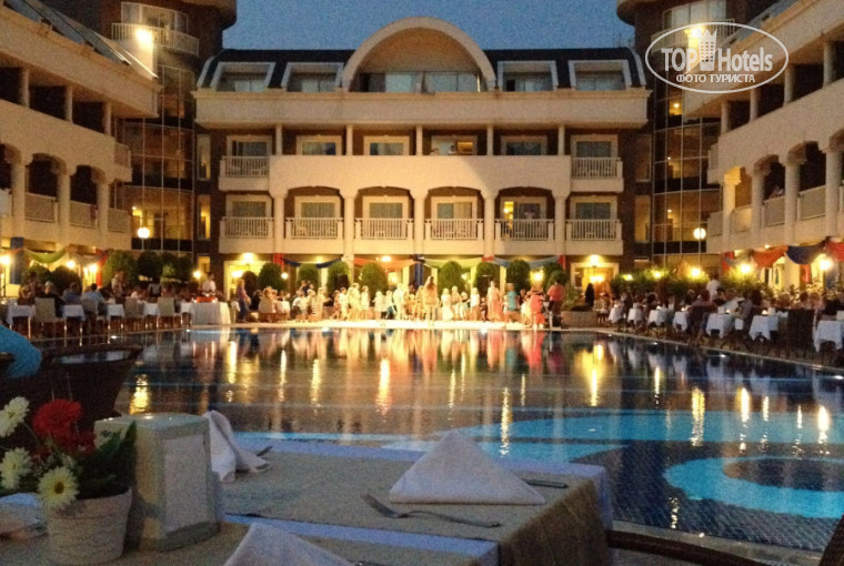 6. Персонал в отеле по-русски говорит плохо, но в принципе все вопросы решались. Официанты молодцы, очень шустрые. В баре напитки all inclusive это: водка(раки), ликер(апельсиновый и банановый), виски, пиво, вино(красное и белое). И безалкогольные типа спрайта и колы. Коктейли платные, например Пина Колада 21 лиру (8$), остальные дороже. Из бесплатного алкоголя я пила только ликер(банановый вкусный), но не все бармены понимают что ты хочешь , так что нальют Вам то, что посчитают нужным)))) Они даже по-английски плохо понимают))))) Один веселый бармен, зовут Baris самый адекватный и приятный, он более ли менее по-русски говорит. Ходили в А ля карт ресторан (одно посещение бесплатно), о чем я пожалела даже, еда невкусная, официант надменный. В отеле есть СПА-центр, хамам, сауна и бассейн, также тренажерный зал. Все понравилось. Также есть небольшой магазин с необходимыми товарами , ювелирный магазин. Есть фотограф.