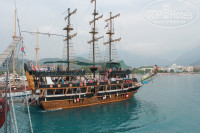 2. Расположен отель в центре. Рядом магазины, напротив отеля у дороги почта- банк(меняли доллары на лиры, выгодный курс), ptt bank вроде бы написано. Уличные агентства на каждом шагу, в Турции 4 раз, всегда покупаю в Ginza экскурсии. В этот раз экскурсию на корабль брали, очень понравилось! Цены в разы ниже, чем у отельного гида( кто вообще у него экскурсии покупает??? ) Гид предлагал аквапарк 60$ с человека, в уличном агентстве 25$. Если поедете самостоятельно, то вход 35 лир со взрослого. Проезд до Анталии 8 $ с человека. Естественно Вас гид будет запугивать тем, что страховка не действует, если Вы поедете через уличное агентство. Не верьте! Страховка начинает действовать с момента прохождения Вами таможенного контроля в вашем городе и до того момента когда Вы прилетите обратно в свой город. Будьте очень внимательны когда переходите улицу, преимущество у них имеет автомобиль, никто не останавливается перед пешеходным переходом, а также для них не важно зеленый или красный светофор, ездят как попало.