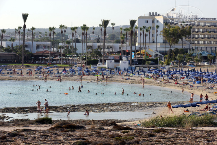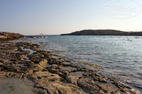 ПЛЯЖ: Каменистый, неудобно заходить в воду (некоторые заходят в тапочках), но не настолько, что «невозможно зайти», как писали где-то в отзывах. В 3-х минутах ходьбы от отеля направо есть гораздо более комфортабельный с точки зрения захода в воду пляж Sandy Bay, еще дальше, минут 15-20 пешком – большой пляж Nissi Beach, считающийся одним из лучших на Кипре (по жаре туда всё-таки далеко топать). На пляже отеля в море есть живность, живущая среди камней – крабы-отшельники, морские звезды, какие-то морские «многоножки», рыбы – есть что посмотреть с маской. На Sandy Bay в основном только песок и живности нет. Вода в первой половине июля – очень теплая, +27, не хотелось вылезать (только иногда, после легких волн, бывала прохладной). Лежаки и зонты у моря платные (2.50 евро за лежак и 2.50 за зонт), но идти от отеля совсем недалеко, поэтому занимали бесплатные лежаки у бассейна или в зеленой зоне (между коттеджами и пляжем – трава, деревья) и шли до моря. Единственный нюанс – обилие отдыхающих, занимающих лучшие места (вблизи пляжа), наверное, с 6 утра, приходилось вставать в 8-8.30 и занимать лежаки. Но у бассейна (подальше от моря) были свободные лежаки и днем.