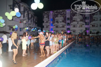 Огромное спасибо анимационной команде!!! DESTY - просто «супер»!!! Сколько в нём энергии!!! Какие он проводит безумные мероприятия, конкурсы, вечеринки, шоу- программы, фейерверки, он «заводит» всех. А пенные и шампанские дискотеки!!! У меня нет слов, чтобы выразить свои восхищения. Представляете, здесь шампанское не пьют, им обливаются. И такие дискотеки были через день, и дневные с участием детей, и ночные, и на пирсе, и у бассейна, и в баре у моря. Да что говорить, из соседних отелей люди приобретали браслетки нашего клуба, чтобы попасть к нам на анимацию. И я специально просила нас заселить в корпус №2 ( возле него находится главный бассейн), чтобы быть в центре и в курсе всех мероприятий. Ребята, и это всё, помимо аква- и степ-аэробики, уроков по танцам, которые проводили профессионалы- великолепные девчонки из Шоу-Балет "VEGAS",известного в Москве, и не только. А также водного поло, дартса, настольного тенниса, пляжного волейбола, которые проходили ежедневно по расписанию. И в главном бассейне можно было купаться аж до 24.00. (с этим я тоже впервые столкнулась). Поэтому после вечерних мероприятий мы ещё и купались.