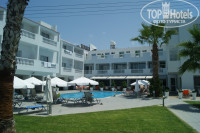 Территория отеля небольшая и очень уютная.Два здания высотой два этажа расположены по периметру,а в середине(во дворе) 2 бассейна.