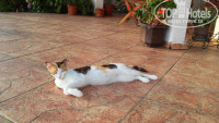 Сама вилла уютная,у нас были 2 номера стандарт,наш с красивым видом на море,у подруги на сад.Номера маленькие,есть фен,напольный кондиционер,холодильничек,чайник.Санузел,тоже маленький,душевая кабинка,дверки хилые,нужно приспособиться их закрывать,чтобы не свалились.Держатель для шланга не на месте,чтобы помыться нужно держать в руке.