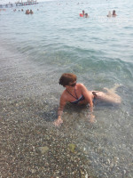 Море тёплое, купались только там , нафиг бассейн- мы едим отдыхать на море или барахтаться в хлорке? Видела как вечером выливали в детский бассейн канистру жидкой дряни, бррр.