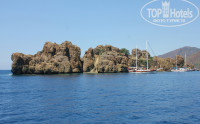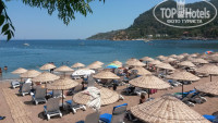 Отель находится на первой береговой линии и имеет свой небольшой бесплатный пляж,лежаки нужно занимать рано.Если опоздали,то можно выбрать другой пляж,купить любой напиток и лежать там весь день.Мы регулярно уезжали на долмуше( стоимость билета 3 лиры в одну сторону) в Ичмелер,море и природа на там нравилась больше.