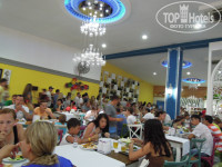 1) Отель рассчитан на 1300 туристов. А заселяют туда.... В 2 РАЗА БОЛЬШЕ (узнала у персонала отеля). Следовательно ресторан, вернее СТОЛОВКА не справляется абсолютно с таким кол-м народа!! Очереди везде и всегда. (как и мухи, кстати): за тарелками, стаканами, кружками, мясом, пиццей... Пицца - одно тесто. "Мясо" только так называется, это мясное подобие тефтелей, которые невозможно есть!