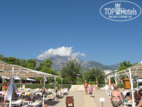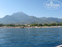 У отеля небольшая очень ухоженная территория, растут и плодоносят различные тропические фрукты. Конечно завораживает вид на гору Тахталы, облака вокруг вершины, канатная дорога- можно разглядеть вагончики. Хороший песчаный пляж, отель на первой линии, всегда много лежаков, иногда правда надоедали рыбки которые пытались сделать пилинг нравилось не всем.