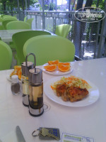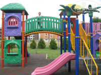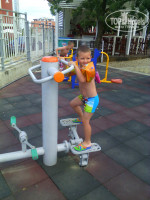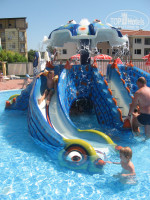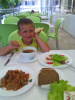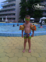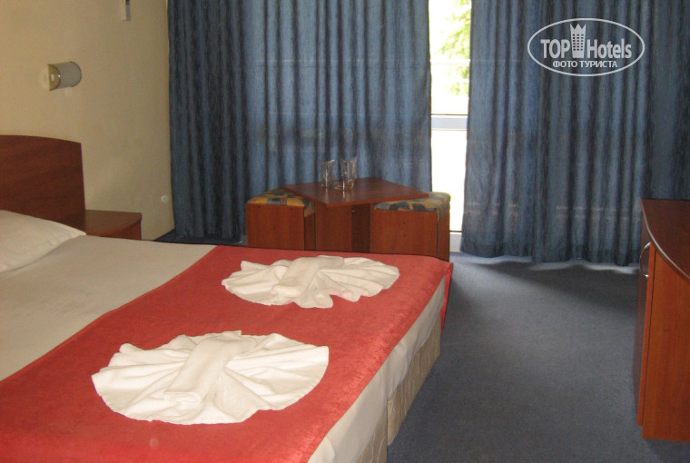 Первое впечатление от отеля было хорошим. Просторный холл со свежим ремонтом (отличается от фото из интернета), приветливый персонал, сносно говорящий по-русски, хорошие лифты. В номере тоже очень неплохо, только неприятное впечатление оставили трещины на стенах((. А так есть жк-телевизор, холодильник (бесплатно), огромная двуспальная кровать, приличный санузел. Но не было сушилки для белья. Вместо этого была веревка на балконе. Уборка номера ежедневно. Полотенца меняли каждый раз, если кинешь на пол. Постель поменяли один раз. Территория отеля большая. Порадовала огромная горка с качелями. Для деток просто супер. Бассейн чистый, большой. Есть детский (глубина 50 см) и взрослый. Лежаков достаточно, перед завтраком в 8-9 часов ещё много свободных. Возле бассейна располагались тренажёры для поддержания фигуры. Ими можно было пользоваться в любое время совершенно бесплатно. Так же бесплатно можно было со своим мячиком поиграть на теннисном корте. Ракетки и мячи на ресепшене за допплату. Теперь о питании. Мы брали полный пансион (FB). Я отдыхала с ребёнком пяти лет. Мне так удобнее. Сразу скажу, что питание скромное, но всё вкусное. Есть, с чем сравнивать. В Болгарии была дважды. Например, если это фрукты, то только 1-2 вида (арбузы, яблоки). Если это сладкое, то только один бисквит. Никаких пирожных и прочей вкусняшки не было. И так во всем. На завтрак и ужин был шведский стол, а на обед нас обслуживал официант. Порции были просто огромные! Нам с ребенком было бы достаточно моей одной, но все приносили в двойном экземпляре. Обед состоял из супа (очень вкусные и каждый день разные), мяса с овощами и десерт (фрукты или бисквит). Еще хотела бы отметить, что за все 12 дней пребывания в отеле мы были единственными русскими!!! Там отдыхают словаки и болгары в основном.