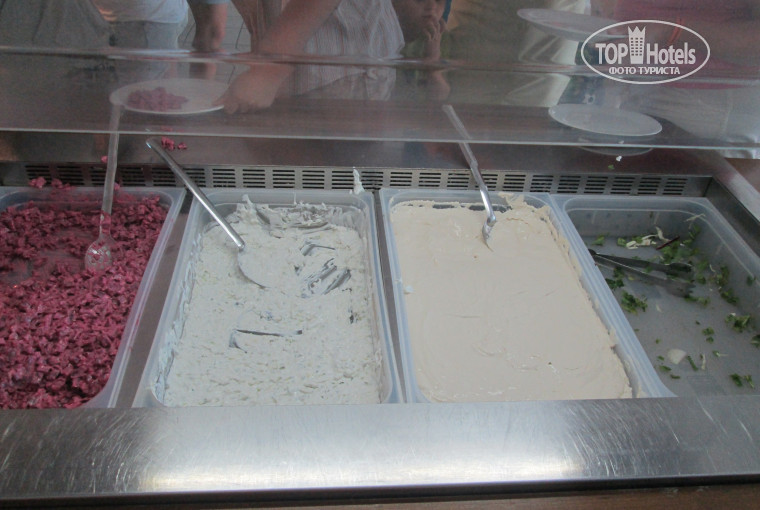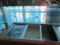 Поселили в основном корпусе. Номер двухкомнатный с кухней. Этот отель точно не 4*. Всё уже старенькое, тараканы. Но с этим можно мириться, а вот питание способно подпортить отдых очень сильно. Ездили по системе всё включено. Завтрак классический континентальный( сосиски, колбаса, странный сыр, яичница), обеды просто фастфуд -3 салата(один из капусты с мин. огурцов и помидор, второй картофель отварной с йогуртом, третий свекла отварная кубиками в йогурте), без супа (он вечером) и куриные или рыбные наггетсы, картофель фри, макароны. Ужины получше, но не всегда, например, один раз ни мяса, ни рыбы, а только куриные крылья в непонятном соусе. Почему то не было ни зелени, ни разнообразия фруктов( одни сливы, минимум арбузов и дынь), огурцы помидоры дефицит, ни оливок, ни сыра(только на завтрак сыр со вкусом дешевого маргарина). Если продукты заканчивались, то их могли и не пополнить или заменить на другие не такие качественные. Один раз на обеде закончился салат, подошла и вежливо попросила принести еще, ответили через минуту принесут.....так до конца обеда и не принесли. Вообщем за все годы наших путешествий по разным странам - это самое отвратительное питание. Для тех, кто едет по системе завтрак или полупансион - напитки только утром, ближайшее кафе в километре ходьбы.