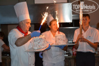ПИТАНИЕ. отличное, разнообразное, все очень вкусное, свежее, приготовлено как домашнее. Мы ребёнка кормили практически все время в ресторане и никаких отравлений, высыпаний и желудочных расстройств не было. Фруктов маловато, но персики были почти каждый день оочень вкусные сладкие, арбуз каждый день очень вкусный. Мне больше нравилось как готовят не на улице на грили а внутри - мясо, курица, рыба обалденные, закуски, все понравилось. Мы ели в основном в Марина Бич (в нашем ресторане) можно было и в другие отели ходить, но мы не ходили т.к. далековато с малышом. Болгарский ресторан - супер! Итальянский - можно сходить раз вкусное тирамиссу обязательно закажите.