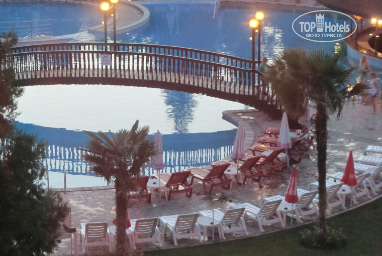 Впервые побывали на отдыхе в отеле. С первых дней поняли, что не прогадали. Архитектура отеля, его расположение вдали в шумных улиц, достаточно зеленая территория - прекрасно уживаются на одной лужайке ёлки, липы, тополя, гибискусы, пальмы и множество цветов, все расположило и оставило приятные воспоминания. Погуляли по улицам, посмотрели на другие отели, даже видели те, что рассматривали в предложениях перед поездкой и остались довольны, что выбрали "Хризантему". Прекрасный и удобный многоуровневый бассейн (вокруг шезлонгов маловато, кто-то лежал на траве, но возможно их устраивало), интересная анимация (команда аниматоров - молодцы), персонал улыбчивый и доброжелательный. Номера на хорошем уровне. Посмеялись, когда в номере заменили полотенца и одно оказалось в дырках - всё-таки надо держать уровень 4 звёзд. Питание также устраивало - выбор был. С ресторанами надо подсуетиться - заказывать заранее. Владельцам на заметку - есть спрос - увеличивайте количество заказов в ресторанах (например, мы в рыбный не попали - запись велась на три дня вперёд, а мы чуть раньше уезжали). Вот с отдыхающими вопросы. Румыны ведут себя нагло, считаю, что они приехали и всё для них. Занимают кучу шезлонгов и из пяти используют 3 постоянно. Говорят громко, зато успевают делать замечания другим, что ныряют и брызгают их, не разрешают лежащим рядом открывать зонты - им надо солнце, они загорают, а зонты делают тень. Могут и на спасателей и смотрителей бассейна "наехать", что не позволяют им раньше срока лежаки занять. К остальным отдыхающим вопросов нет.