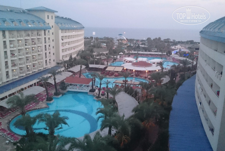 Прошла меньше недели как вернулись из данного отеля. Начну по порядку: приехали в отель в 21.00 средне Турецкого времени. Заселили за 10 минут. Комната на 6-м этаже с видом на бассейны и море, то есть во внутреннюю часть отеля. Кормежка в отеле 24 часа в сутки, так что после заселения не голодали. Если говорить о системе питания, то на завтрак, обед и ужин еды Море! Разнообразие тоже на уровне, есть стол для маленьких детей -все парёное, для всех куча всевозможных салатов, мяса, сладостей. Есть ресторан на пляже. Так что те кто собирается поправиться и набрать вес справятся с этим на "ура". Бассейны имеются в наличии, но мы приехали на море, поэтому бассейны не для нас. Теперь о море, пляже - море солёное, мокрое, тёплое. Пляж - песок с мелкой галькой, вход в море -1,5 метра песок, затем более крупная галька. Честно говоря пляж не впечатлил, вроде и урны стоят и маленькие ведёрки тоже под мусор, а везде окурки, фантики. Понятно, что чисто не там где убирают, а там где не спорят. Но всё-же убирать то можно. В прошлом году были в Белеке, так там пляж вычещен и причёсан. Относительно сервиса, всё на уровне 5*. Уборка номеров ежедневно. Территория отеля не большая, я бы даже сказал маленькая. Зато все бары, бассейны, всевозможные сервиса всё в шаговой доступности. Особо хотелось бы отметить о контингенте отдыхающих, очень много турок, есть немцы, прибалты, но турки преобладают. Вы когда нибудь слушать восточных бардов под гитару, а под скрипку? Вы хотите наслаждаться этими трелями до 12 ночи? Нет, тогда Вам надо приехать в этот отель и попросить поселить с окнами во двор. Вы получите "истинно не забываемые впечатления" от данной музыки. Если меня спросят, поехал-бы в данный отель ещё раз, я бы задумался. За такие 💰, точно бы не поехал. Штука американский рублей на человека, я считаю дороговато за этот отель. Красная цена 600-700 $ -самое то! Про развлекательную программу говорить нечего-стандартный набор, танцы и водные игры в бассейне, детская анимация, вечерняя анимация для взрослых.