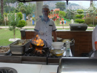 Большое количество блюд, разнообразные виды приготовления - вряд ли кто дома столько готовит. Людям, соблюдающий особый режим питания ( как нам), всегда есть что поесть. И отварное, и жареное, и на пару, и тушеное - на любой вкус. Все свежее, вкусное. Овощи, фрукты каждый день.Если кому то мало - можно все купить на рыночках возле отеля. Сладости : отдельный респект. Не все успели попробовать - такое разнообразие. Напитки пробовали все кроме алкогольных: Чай ( разнообразный - зеленый, фруктовые, травяные, черный), кофе, кола, фанта, соки, и т.д. Доступ к напиткам почти круглосуточно, что в жару очень важно. Насчет алкогольных напитков сказать ничего не могу- не любитель. Четко и слаженно работают официанты-быстро убирают со столов, меняют приборы. Пробовали турецкие лепешки с разными начинками. Очень вкусно.Про мороженое не очень поняли- когда платно, когда бесплатно. Все, что ели - было бесплатно.