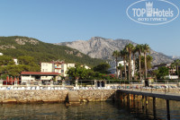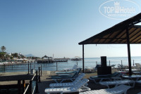 Пляж - бетонныя плита и морская платформа. Для тех, кто плохо плавает есть обустроенный проход в море через соседний отель или по каменной лестнице (но она мне доверие не внушала). Для тех кто плавает хорошо - лестница с пирса. Мы ею пользовались, вполне устраивала. Не мешала бы еще одна такая с морской платформы, а то долго выплывать в "открытое" море. Вода чистая, рыбки стаями плавают. Но есть одно неприятное обстоятельство - в каком-то из соседних отелей в сторону Кемера систематически роняют урну, и тогда вдоль всего побережья компактно проплывает мусор, приходилось пережидать, поскольку на нашей территории он проплывал как раз в районе спуска с пирса.