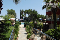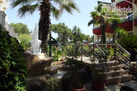 Отдельно хочется похвалить территорию отеля. Очень все красиво и ухожено. Есть фонтан, есть водопады (правда, обитателям 1 этажа старого корпуса они вряд ли в радость), очень красивые сосны, много пальм нескольких видов, много кустарников (даже ежевика с ягодами) и цветов. Очень грамотно разбит парк, с разных ракурсов открываются разные виды, один прекрасней другого. И еще, конечно, прекрасные виды на окружающие горы. Когда лежишь в тенёчке на морской платформе и любуешься на море, горы, сосны, пальмы - просто кайф, все недостатки отеля как-то забываются