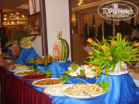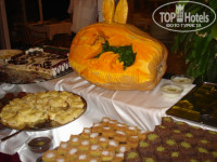 3. Питание. Конечно, разнообразие 2013 проиграло в сравнении с 2007. На завтраках. А разнообразие ресторана на обед и ужин вполне себе потягаются со многими экономичными "пятерками". Мясо в различных вариациях и видах (говядина, индейка, баранина, ну и конечно курица, печень, были даже морепродукты), фрукты и десерты, про закуски я даже не говорю. Все на уровне. Завтраки разочаровали, честно говоря. Но ничего, это уж мы разбалованные, все равно было из чего выбрать. В течение всего дня питание есть и а пляже, и в барах. Что удобно на пляже - можно вообще не уходить, играть в волейбол, периодически прибегать за дыней/арбузом и убегать играть или плавать снова. Для желающих есть всяческая еда: салаты, спагетти, тушеные овощи, мясо, фрукты. Также напитки: чай, кофе, кола, пиво, и конечно красавец АЙРАН. Там же бабулечка печет гезлеме -вкуснейшие!!!