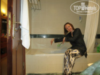 Номер шикарный (опять же в сравнении). Огромная кровать, есть кресла и столик. В ванной комнате приличная ванна, большое зеркало.